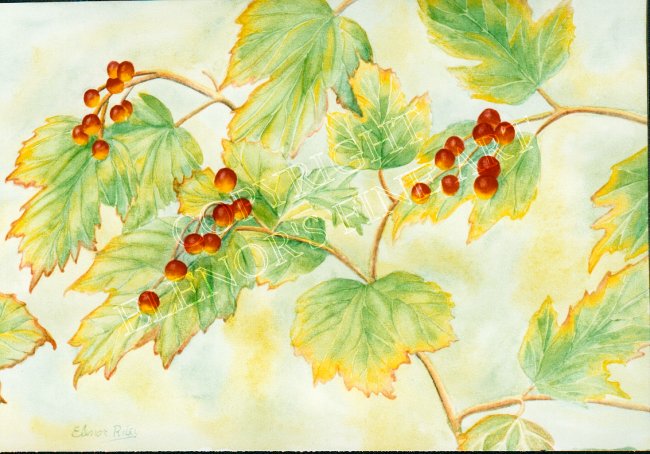 The glow of fall colours is well displayed with the High Bush Cranberries. Our next-door neighbors had a bush in their front yard that drew your eye when passing. I painted this image on hot pressed paper to achieve the clarity and glow. Framed wood 16 X 19 SOLD |